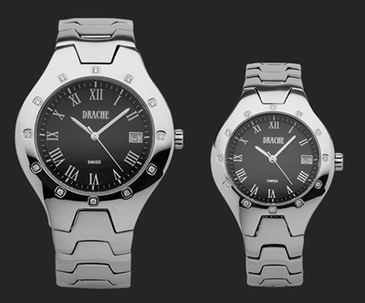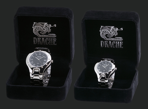 Zeitlose Schönheit und Eleganz sowie moderne Technologie gehen bei der DRACHE-Brillantuhr eine ganz besonders faszinierende Verbindung ein. Aus hochwertigstem Edelstahl und jeweils 12 funkelnden Vollschliffbrillanten sowie einem präzisen Schweizer Quarz-Uhrwerk schufen Schmuckdesigner und Uhrmacher gemeinsam dieses einzigartige Juwel der Zeitmessung.